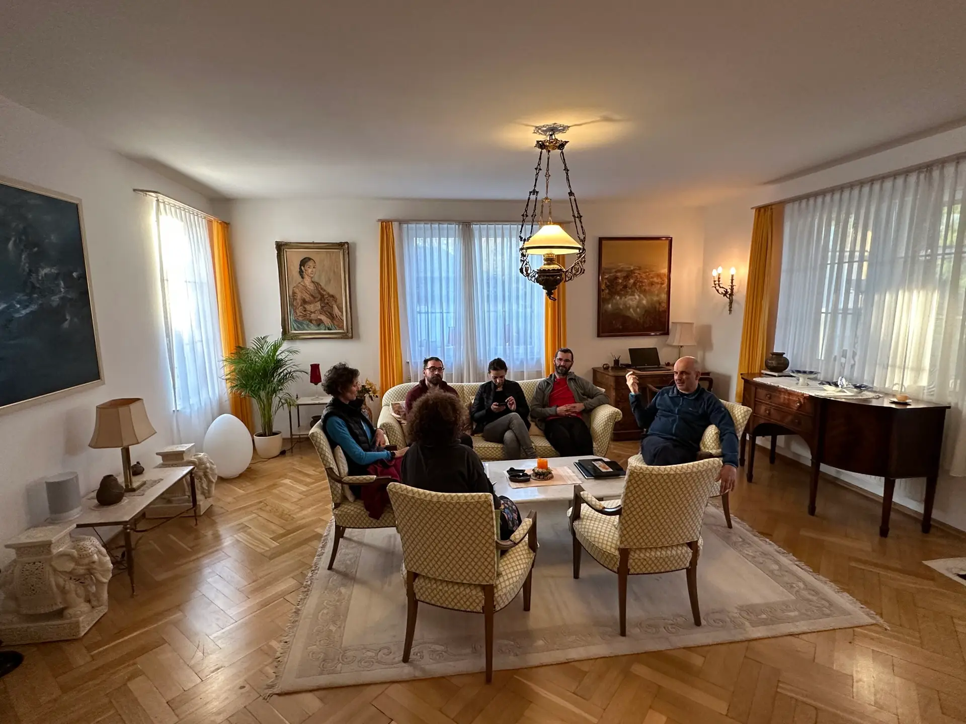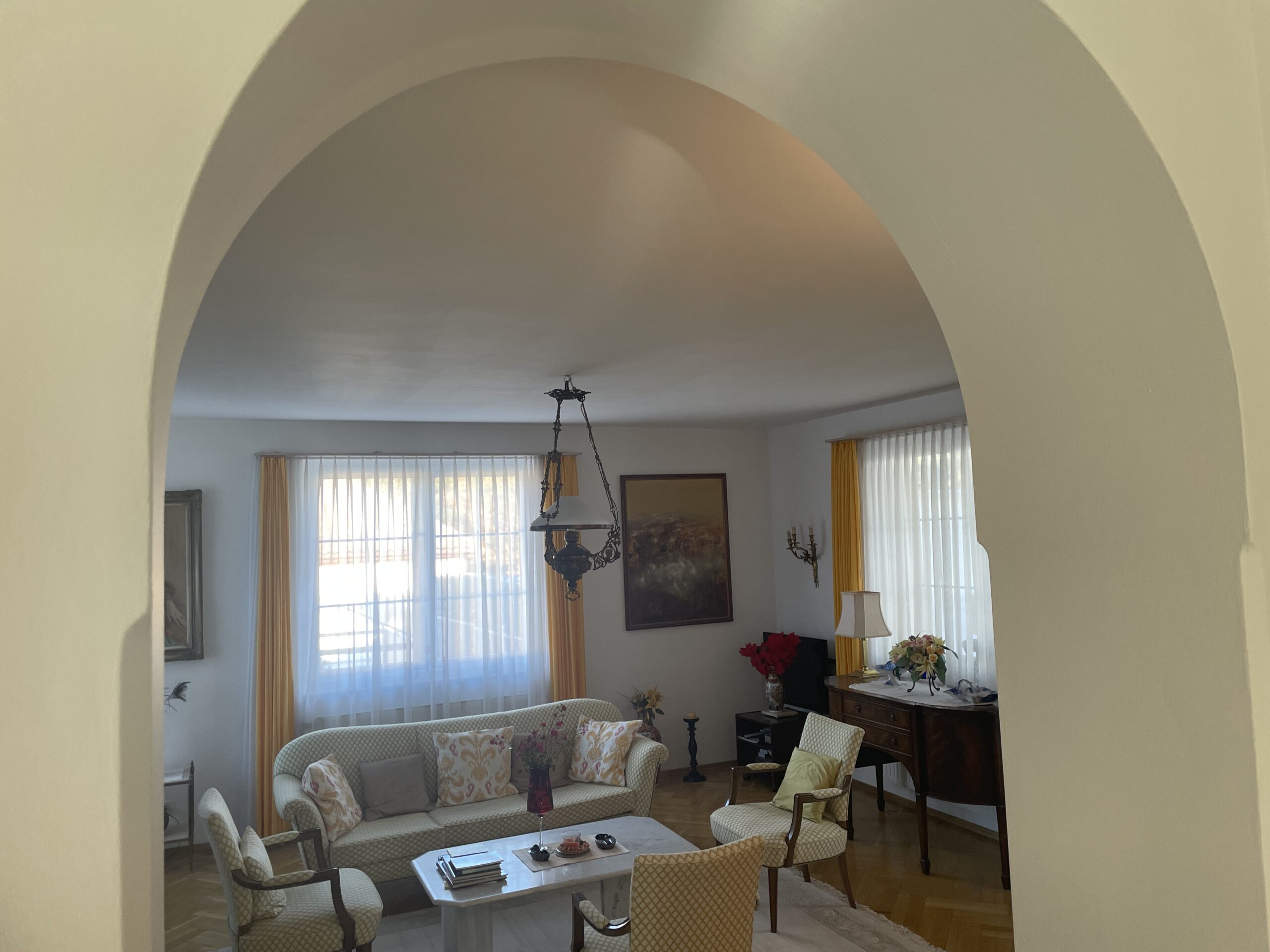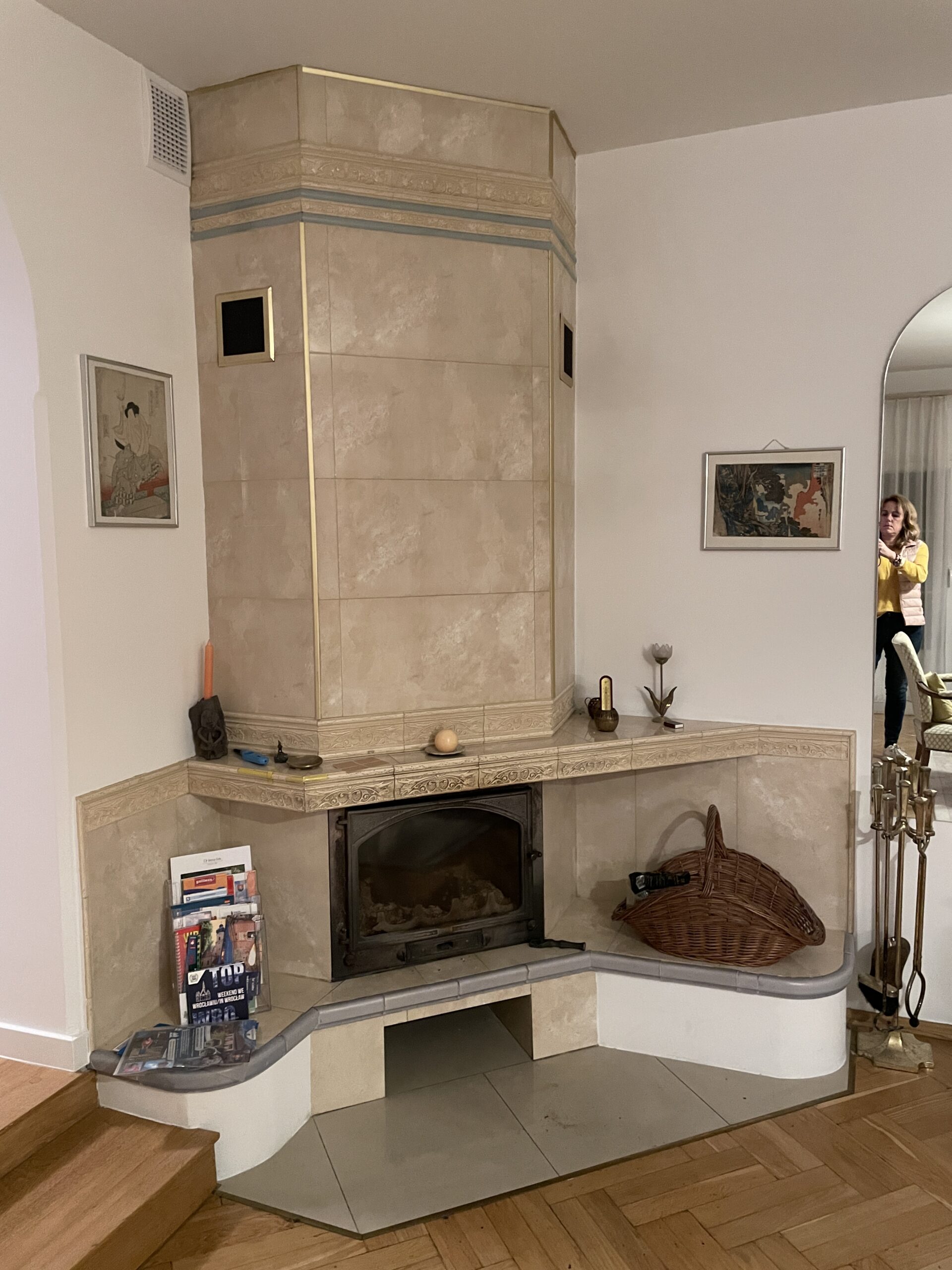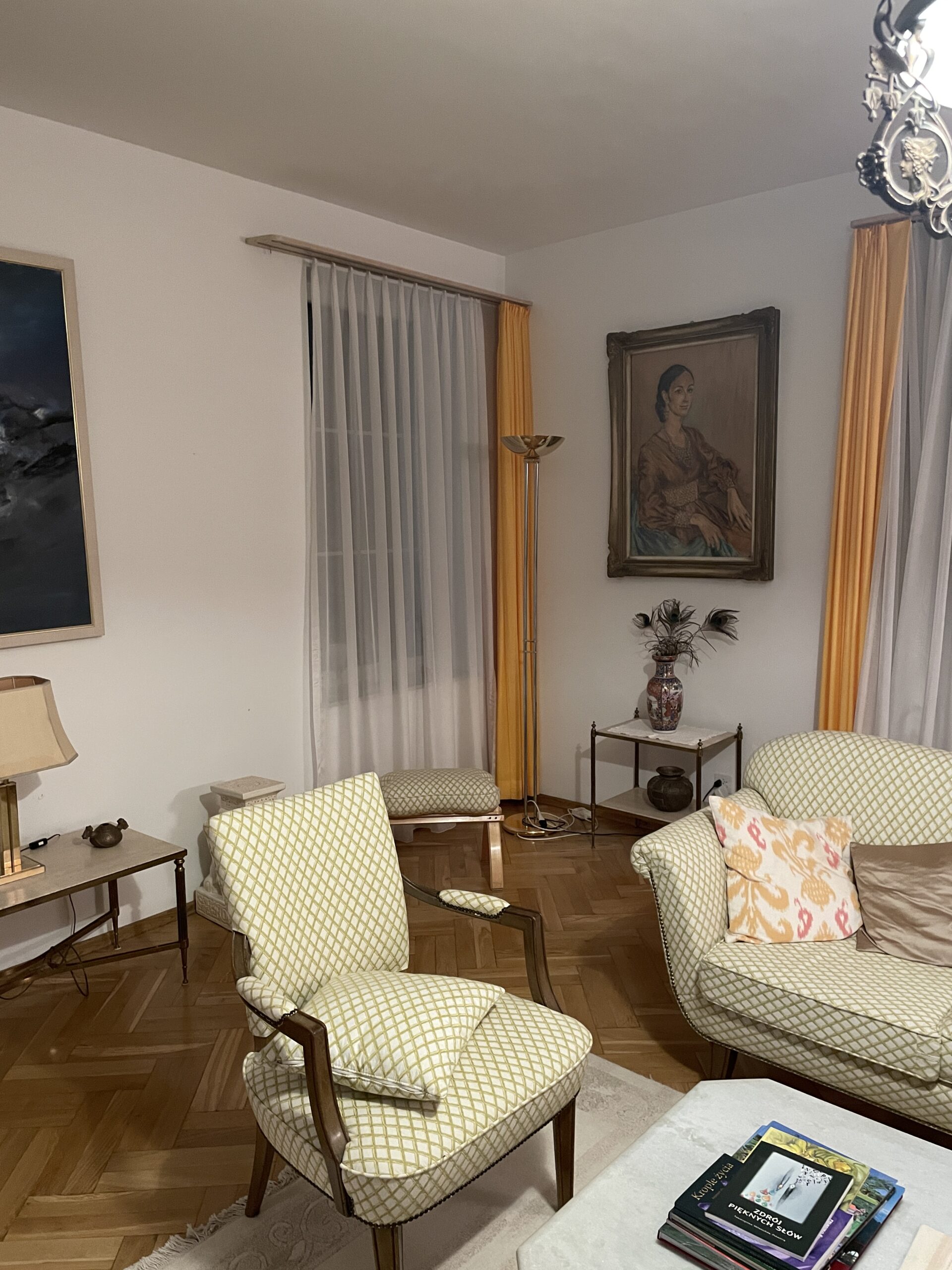 Stylish living room as a cozy salon with fireplace and antique furniture, books – access to the winter garden for quiet moments. Desk with laptop for free use. Large TV. Free internet / WIFI.